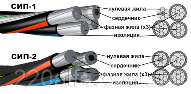 Кількість жил – від 1 до 4. Маркування виглядає подібно до цього: «СИП 1, СІП 2» і так далі. Якщо після цифри присутня літера «А», значить нульова жила ізольована, якщо немає – то нуль без ізоляції. Жили покриті стійким до УФ-випромінювання поліетиленом. Від маркування може бути змінена кількість жил і їх конструкція. Відмітна особливість марки СІП 3 – це те, що він одножильний сталеалюміневий провід.